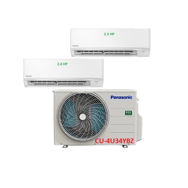 Hệ thống máy lạnh Multi Split Panasonic Inverter Gas R32 – 1 Dàn nóng 4 HP + 2 Dàn lạnh treo tường tiêu chuẩn 2 HP- 2.5 HP