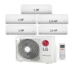 Máy Lạnh Multi LG 1 Dàn Nóng 5 Hp + 3 Dàn Lạnh Treo Tường 1 Hp + 2 Dàn Lạnh Treo Tường 1.5 Hp
