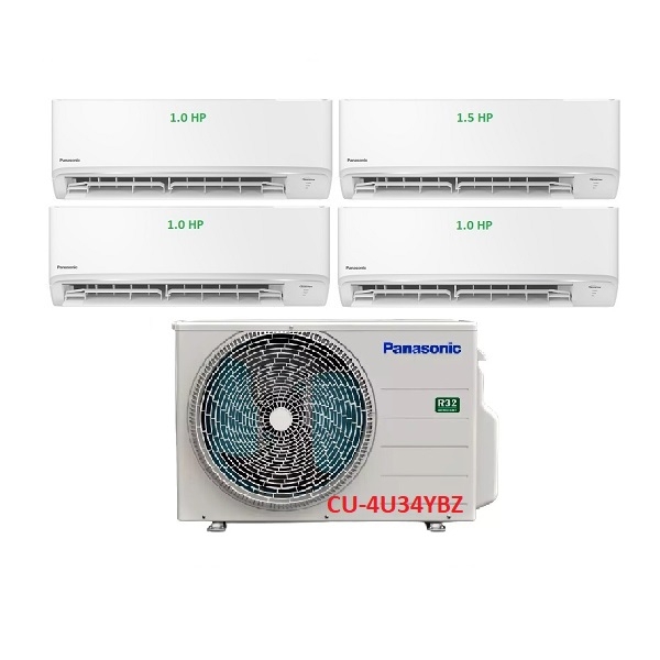 Hệ thống máy lạnh Multi Split Panasonic Inverter Gas R32 – 1 Dàn nóng 4 HP + 4 Dàn lạnh treo tường tiêu chuẩn 1 HP-1.5 HP