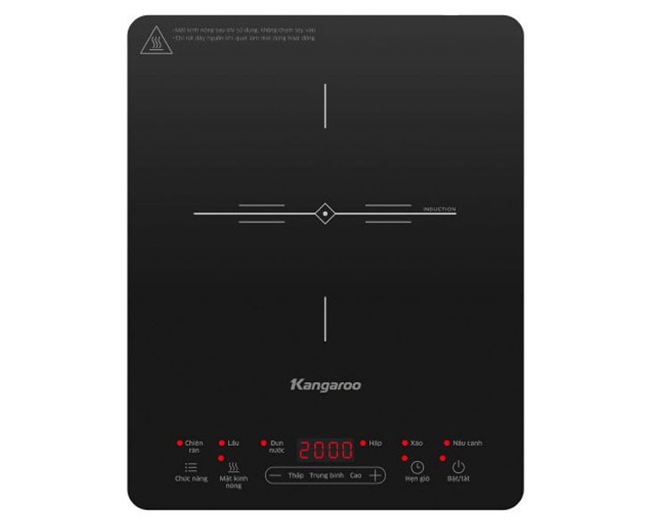 Bếp từ Kangaroo KGIC20S2 có công suất 2000W giúp nấu chín thức ăn nhanh chóng, tiết kiệm thời gian nấu nướng.