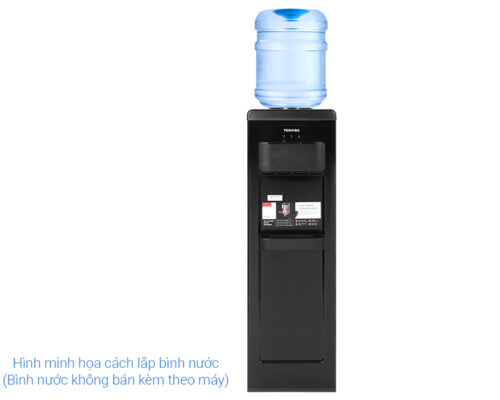Kiểu dáng cây nước nóng lạnh Toshiba hiện đại, màu đen thanh lịch, kết cấu chắc chắn, tạo điểm nhấn cho không gian phòng khách, phòng làm việc, phòng bếp gia đình, công ty
