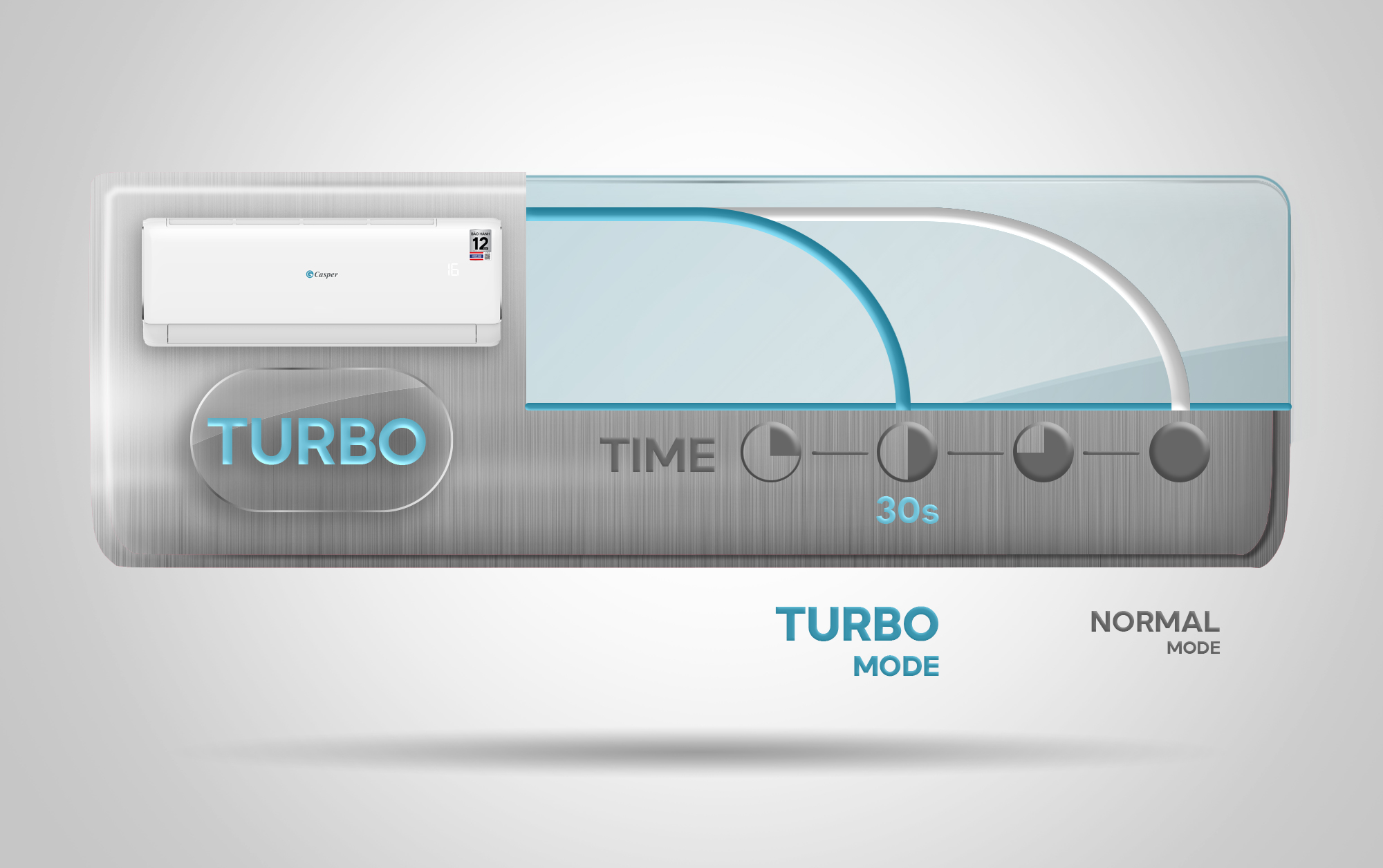 Kích hoạt chế độ Turbo, điều hòa sẽ hoạt động ở cấp độ thổi gió cao nhất mang đến hiệu quả làm mát rất nhanh chỉ trong 30 giây giúp bạn tận hưởng ngay bầu không khí dễ chịu mát mẻ.