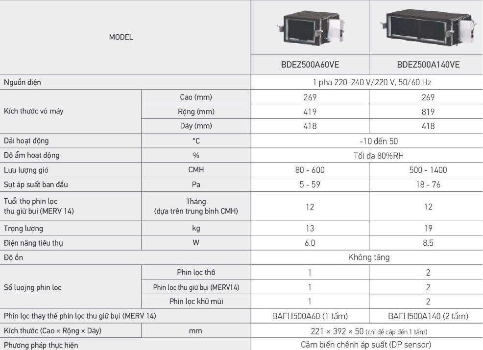 Thông số kỹ thuật máy BDEZ500A140VE: