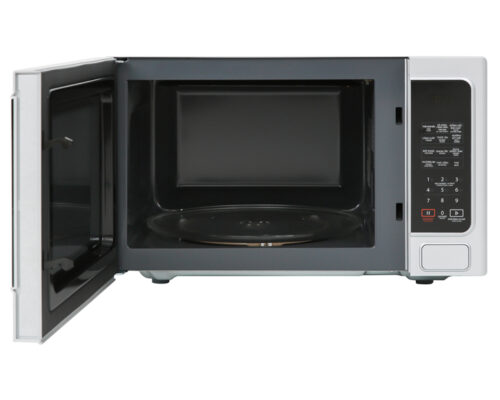 Khoang lò vi sóng bằng thép không gỉ, cửa lò bằng kính chịu nhiệt bóng sáng, độ bền cao, ít bám bẩn, dễ làm sạch