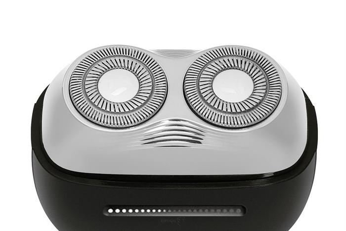- Thiết kế đầu cạo nổi, lưới cắt vòng đôi mở rộng diện tích tiếp xúc, rút ngắn thời gian cạo.