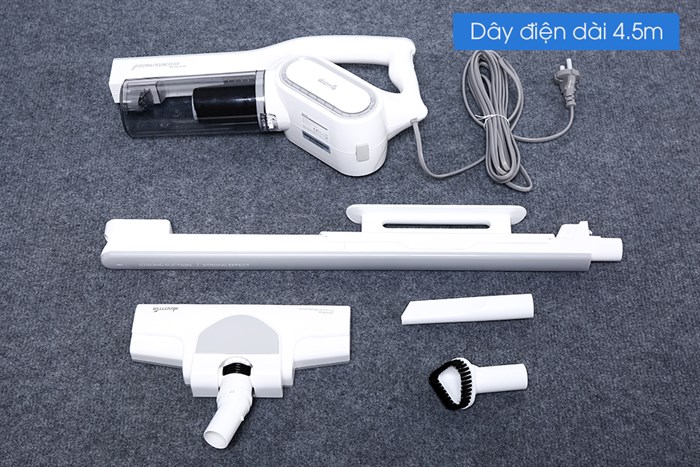 Máy hút bụi Deerma này có dây điện dài 450 cm giúp người dùng có thể di chuyển và sử dụng máy ở những vị trí xa nguồn điện