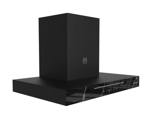 Máy hút mùi Junger được thiết kế lắp âm tủ với màu xám đen sang trọng, tạo điểm nhấn cho căn bếp