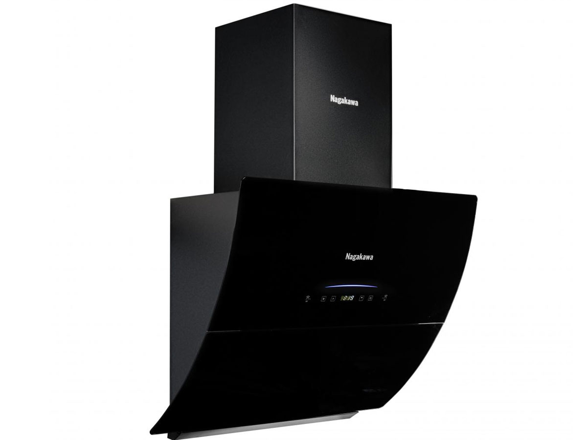 Máy hút mùi cao cấp Nagakawa NAG1854-70VM thiết kế theo dạng kính vát màu đen sang trọng như một chiếc Tivi màn hình phẳng, đặc biệt máy đóng mở tự động hiện đại phù hợp mọi căn bếp.
