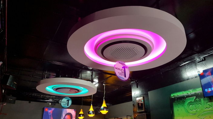 Máy lạnh âm trần 360 độ Samsung được trang bị các quạt tăng áp nhỏ cho phép gió lạnh thổi xuống được ở các góc thấp hơn trong phòng. Bằng cách tạo ra một vùng áp suất chênh lệch xung quanh cửa thoát, gió lạnh được tự động điều chỉnh hướng thổi ngang hoặc thổi xuống. Công nghệ tiên tiến này khắc phục được hạn chế của các cửa thoát gió tồn tại trên các dòng máy lạnh âm trần thông thường sử dụng cánh đảo gió để điều chỉnh hướng thổi làm giảm đáng kể lượng gió thổi vào phòng.