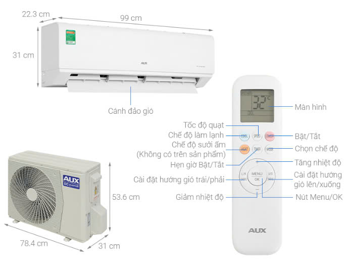 - Kích thước dàn lạnh (RxCxS): 1002 x 318 x 237 mm