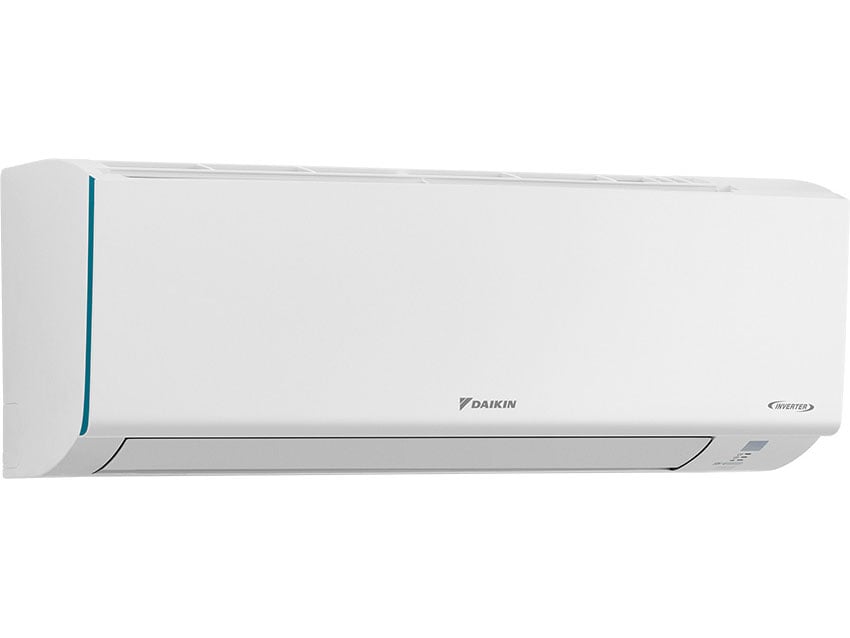 Máy lạnh Daikin FTKF50YVMV/RKF50YVMV sở hữu kiểu dáng hình chữ nhật sang trọng với đường viền màu xanh tạo điểm nhấn, xung quanh bo cạnh mềm mại, lắp treo tường tiết kiệm diện tích.