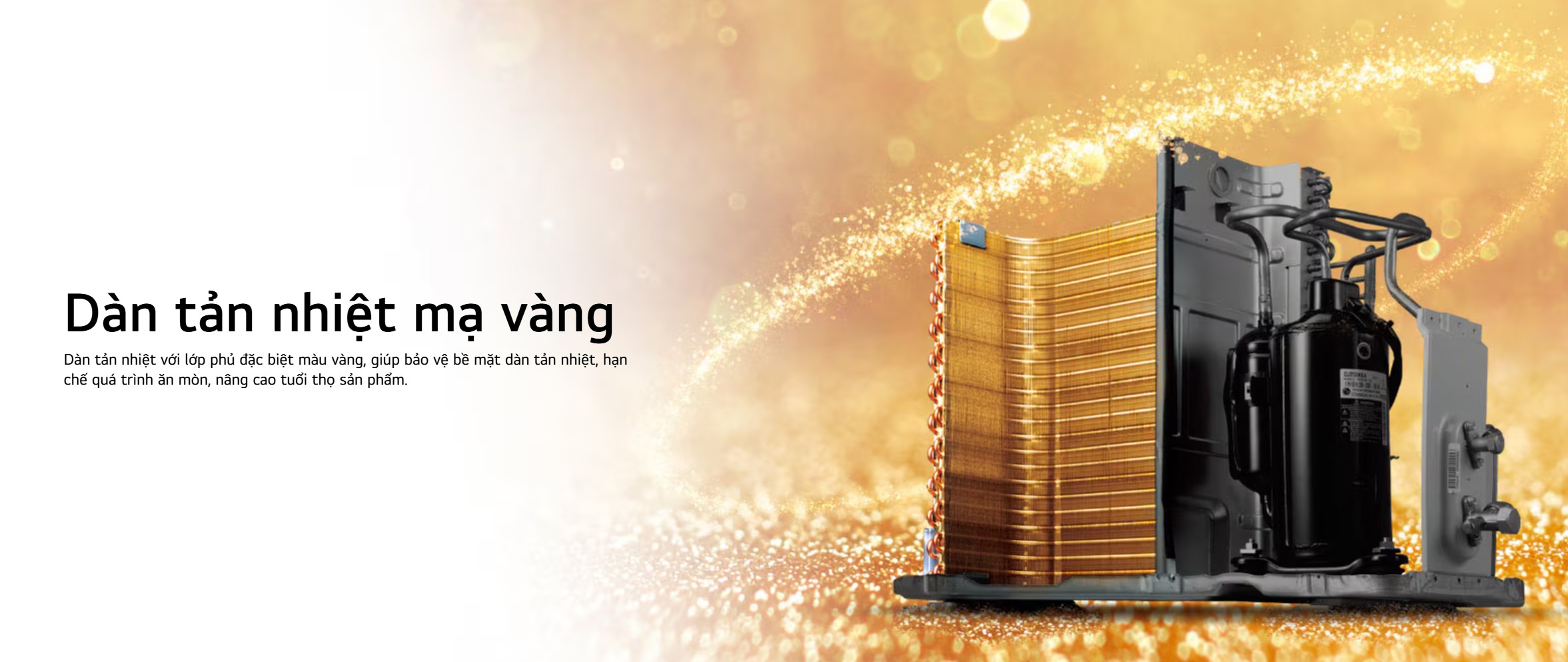 Dàn nóng sử dụng tản nhiệt bằng đồng mạ Gold Fin bền bỉ hơn.