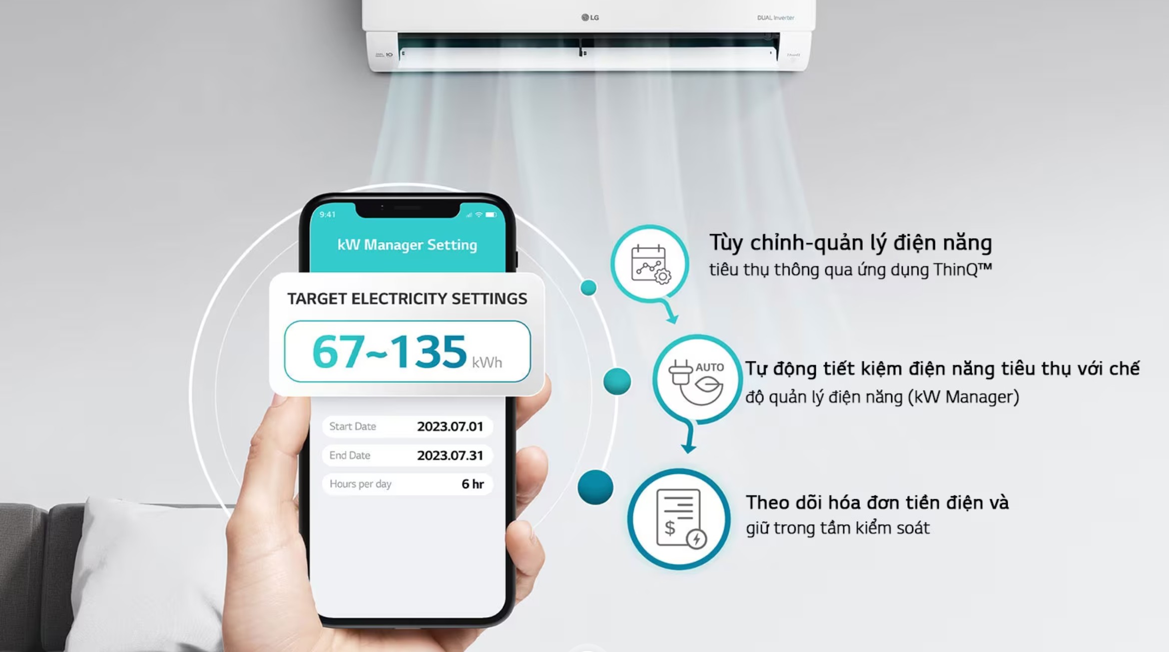 Máy tích hợp wifi sẳn trong máy, quản lý thuật tiện qua app nhà thông minh Thin Q qua điện thoại.