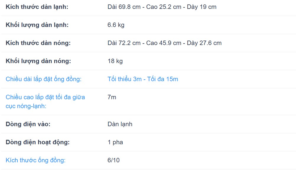 Công suất lạnh 1Hp phù hợp phòng dưới 45m3.