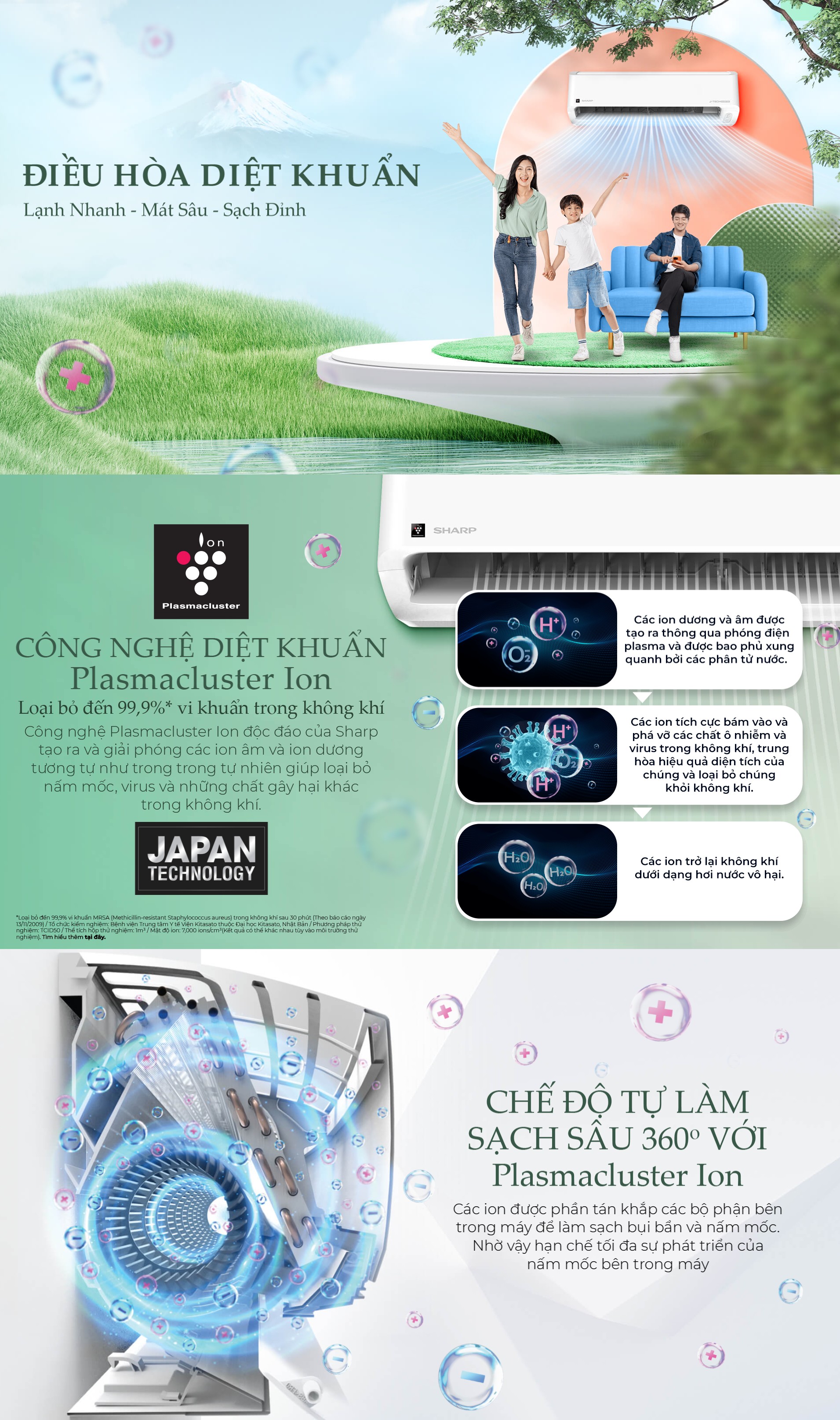 - Công nghệ Plasmacluster ion diệt khuẩn và thanh lọc không khí