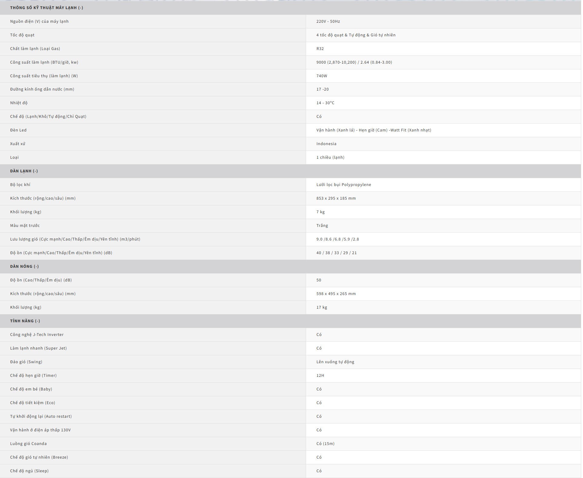 - Công nghệ J-Tech Inverter: tiết kiệm điện năng tối ưu