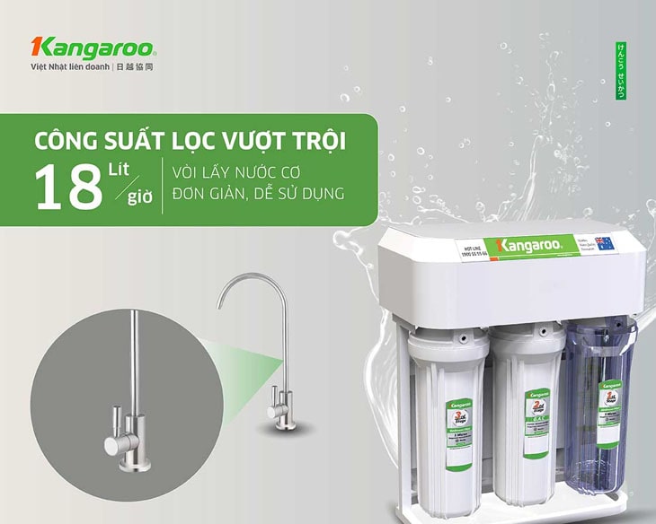 Vượt trội so với các mẫu để gầm cũ trên thị trường, máy lọc nước Kangaroo Hydrogen KGHP10K2 có công suất lọc lên tới 18L/h phục vụ thoải mái nhu cầu sử dụng liên tục cho 4 – 6 người/ngày. Không chỉ dùng để uống trực tiếp hàng ngày, bạn có thể sử dụng nước để nấu ăn, sinh hoạt, rửa thực phẩm…