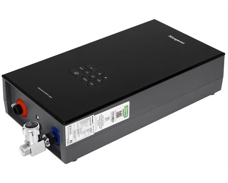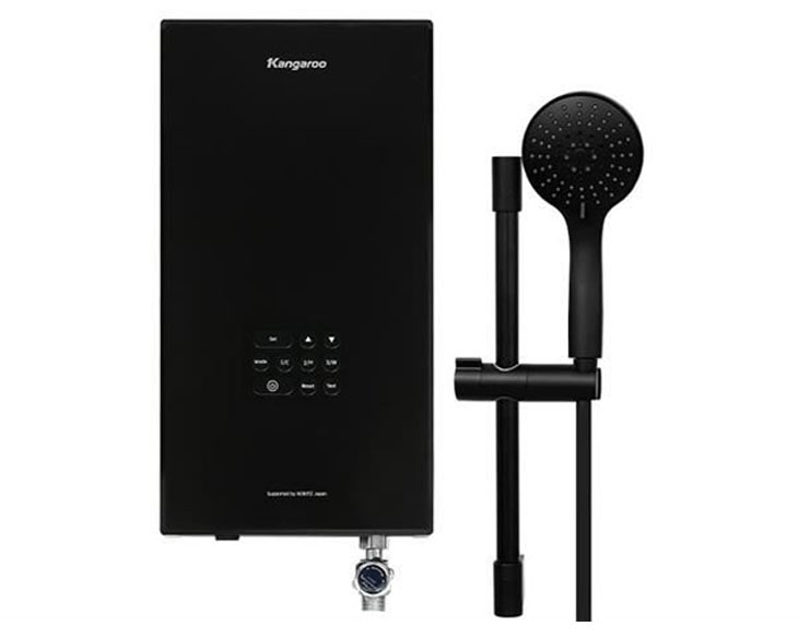 – Máy nước nóng trực tiếp Kangaroo thiết kế với kiểu dáng hình chữ nhật hiện đại, gam màu đen tối giản, sang trọng góp phần làm nổi bật không gian phòng tắm.