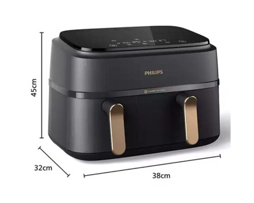 Nồi chiên không dầu Philips NA352/00 9 lít với thiết kế 2 ngăn tiện lợi, bạn có thể nấu nhiều loại thực phẩm khác nhau cùng một lúc. Ngăn lớn phù hợp để nấu các món chính, khoai tây chiên, trong khi ngăn nhỏ hơn có thể được sử dụng để nấu các món ăn kèm, rau và đồ ăn nhẹ.