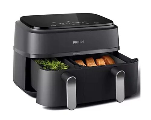 Nồi chiên không dầu Philips được trang bị tính năng tự động đồng bộ hóa thời gian nấu. Điều này giúp đảm bảo rằng thực phẩm trong cả hai ngăn đều nấu xong cùng một lúc.