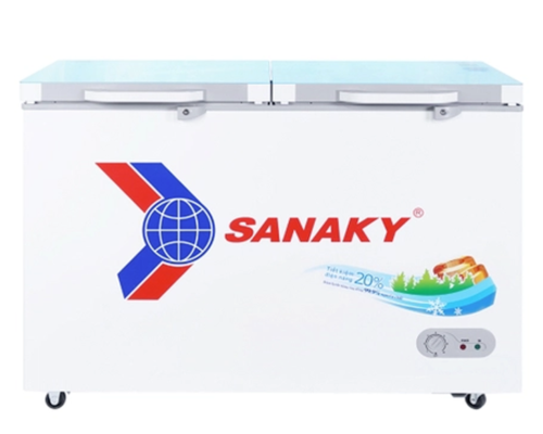 - 1 ngăn đông, 2 cánh mở: Tủ đông Sanaky VH-8699HYK là dòng tủ 1 ngăn đông nhưng lại được thiết kế 2 cánh mở, mang đến sự tiện lợi cho bạn trong việc tìm kiếm thực phẩm cần dùng và đặt thực phẩm bên trong tủ cũng như giảm bớt tình trạng hơi lạnh thoát ra ngoài gây tiêu hao điện năng.