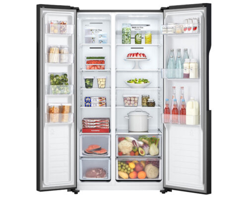 – Thuộc dòng tủ lạnh Side by side, chất liệu cửa tủ được làm từ thép không gỉ bền đẹp với thời gian, màu đen sang trọng phù hợp với nhiều kiểu thiết kế nội thất.