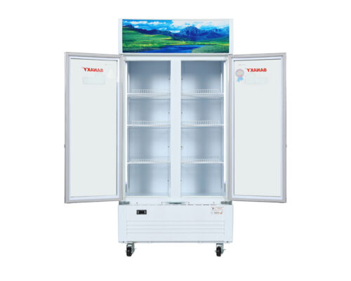 – Dạng tủ 2 cánh và 1 ngăn mát với phần cánh tủ bằng nhựa bọc nhôm có độ bền cao và có thể dễ dàng nhìn thấy thực phẩm bên trong, tiện cho việc bán hàng.