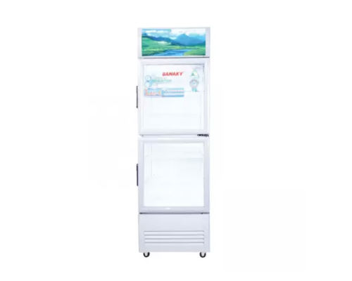 Tủ mát Sanaky được thiết kế với hệ thống đèn LED dọc theo hông và nóc tủ, chiếu sáng toàn bộ các góc khuất giúp trưng bày các sản phẩm bắt mắt và thu hút.