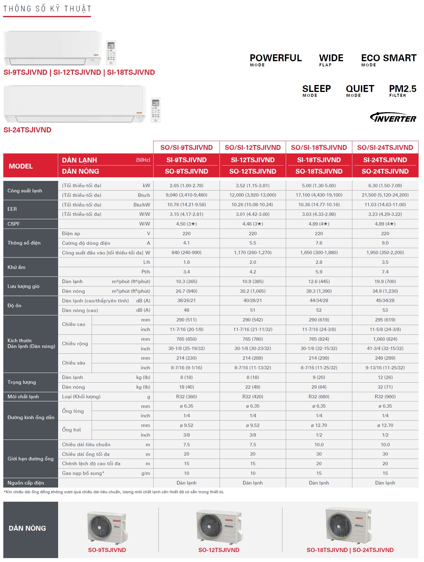 Thông số kỹ thuật dòng máy lạnh treo tường Sanyo inverter