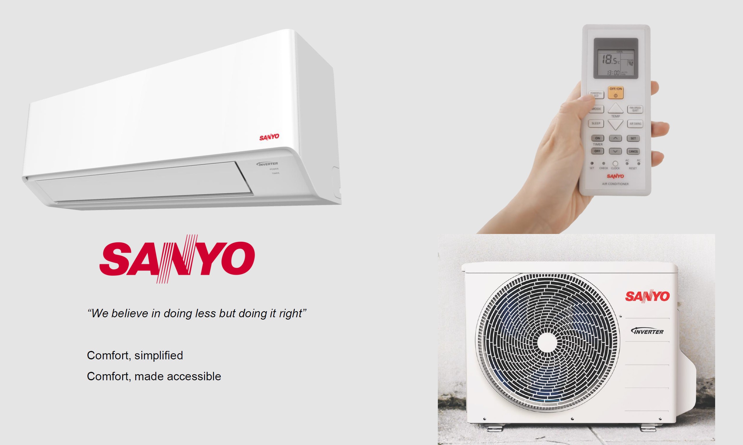 Máy lạnh inverter tiết kiệm điện chính hãng Sanyo Nhật Bản.