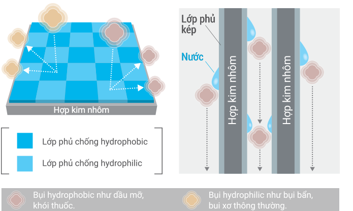 ![]() | Công nghệ lớp phủ tân tiến nhất Công nghệ lớp phủ kép chống bám bẩn giúp ngăn ngừa tích tụ bụi bẩn , khói thuốc và dầu mỡ trên bề mặt giúp thiết bị luôn sạch | |||